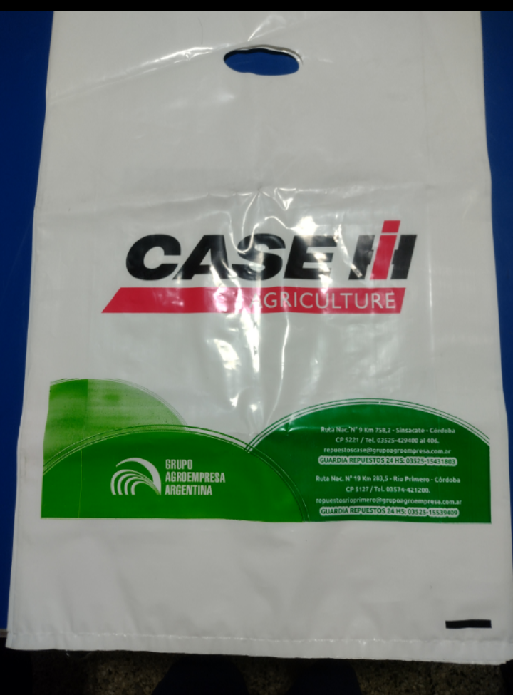 Bolsas plásticas personalizadas con manija riñón, ideales para comercios. Resistentes, prácticas y con buena presentación para entregar productos con tu marca.